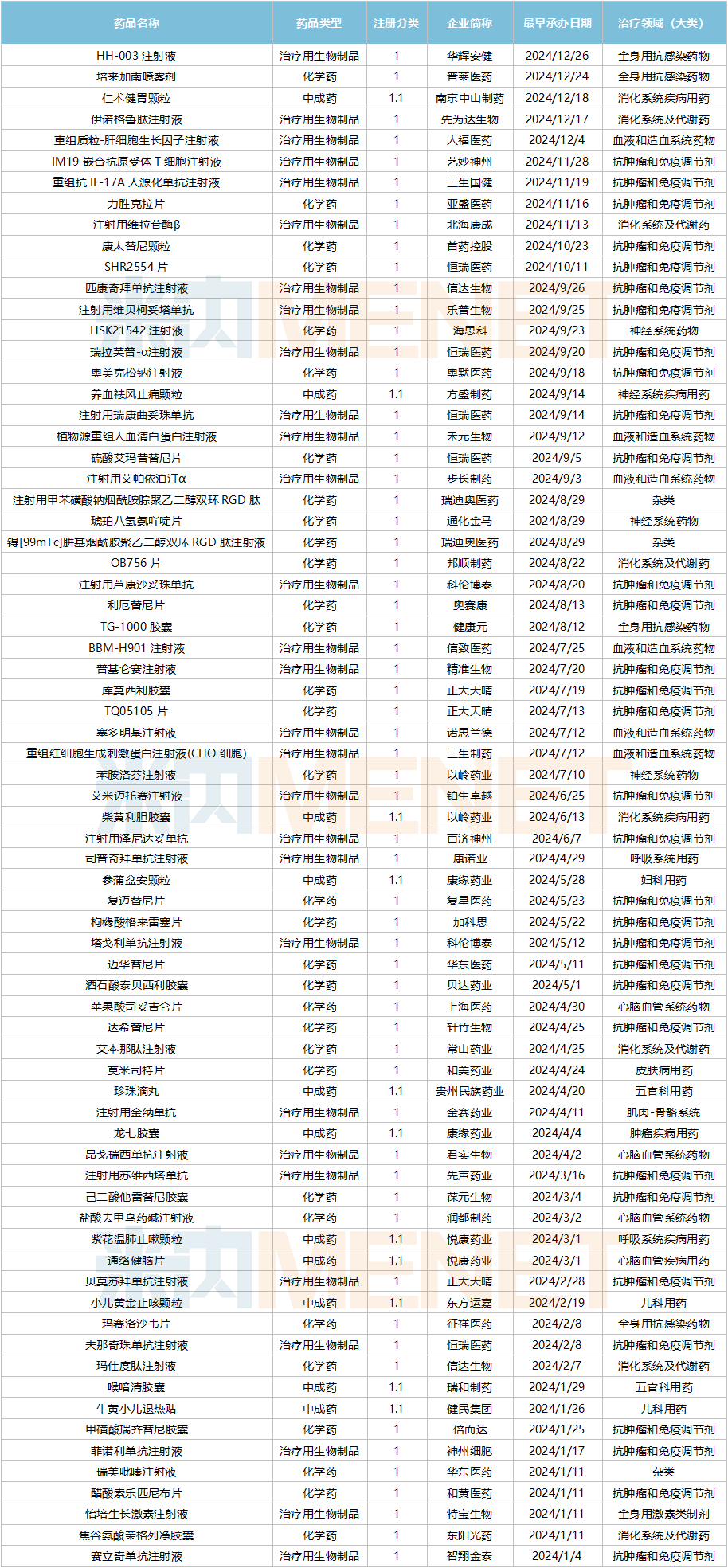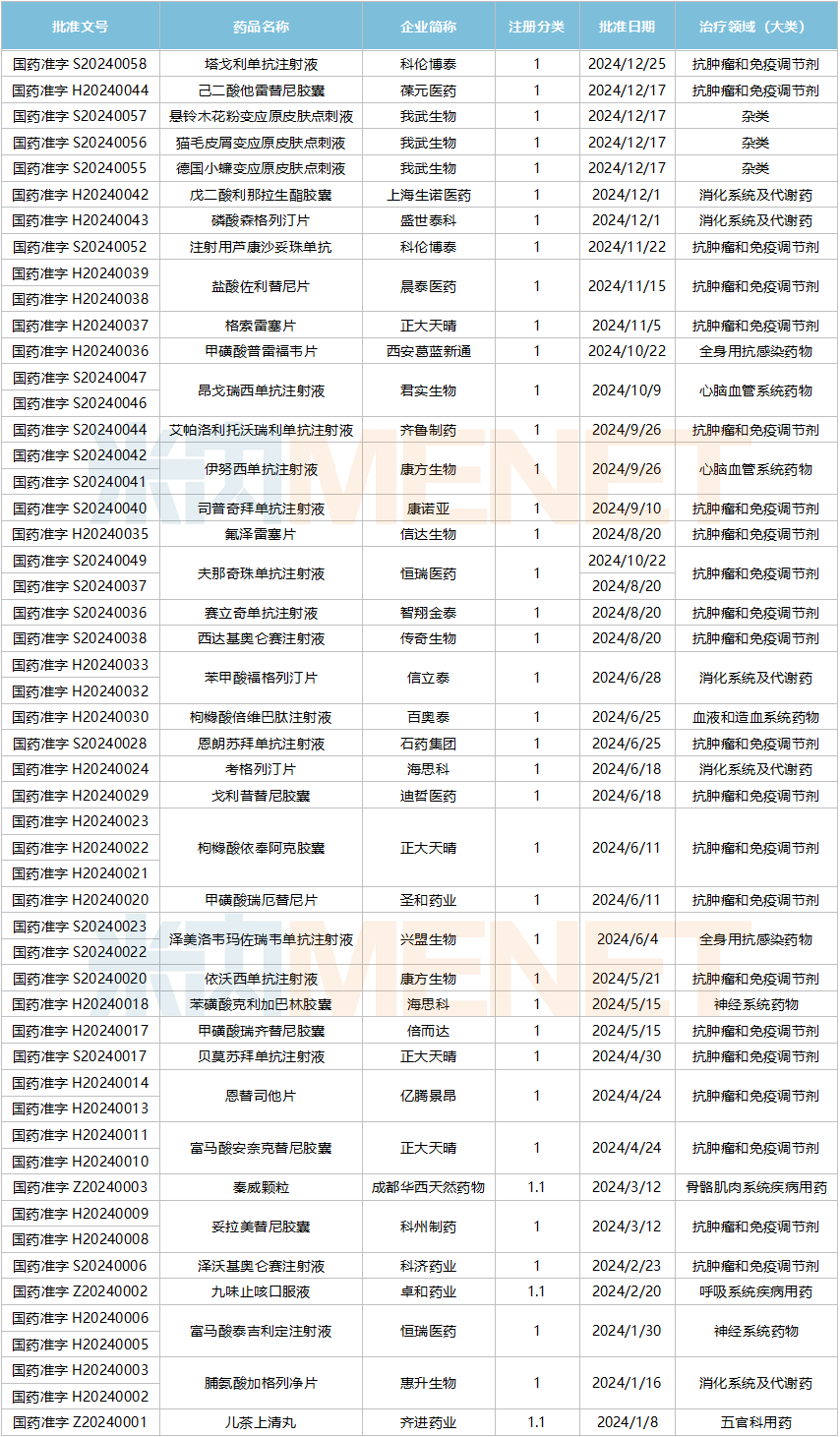 2024年获批上市的国产1类新药